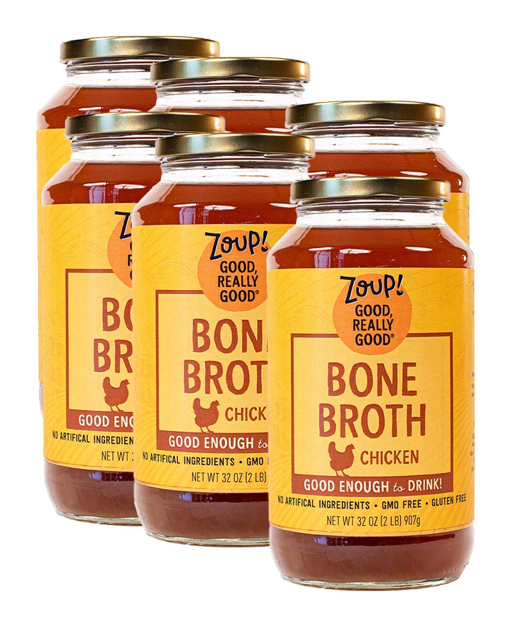 Amazon Com Zoup Chicken Bone Broth Fat Free Chicken Broth 6 Pack Of 32 Oz Jars Grocery Gourmet Food