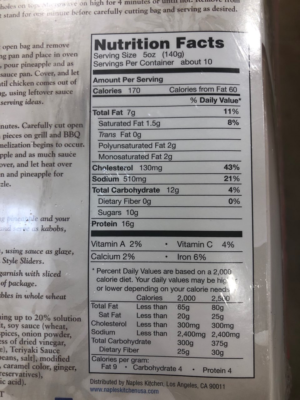 Naples Kitchen Chicken Hawaiian Style Calories Nutrition Analysis More Fooducate